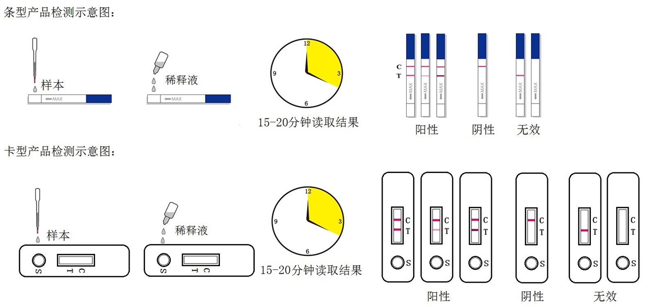 是嘔吐毒素最簡便的檢測方法,檢測不需要配套儀器,樣品處理簡單,五到十分鐘就可以看到檢測結(jié)果。可以根據(jù)G、T線,初步確定所測樣本毒素含量范圍,但不能給出具體數(shù)值。價格最低、沒有國標(biāo)支持,適合企業(yè)初檢使用。