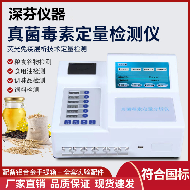 深芬儀器CSY-YG701真菌毒素快速檢測(cè)儀能夠快速定量檢測(cè)糧食、飼料、谷物、食用油、調(diào)味品等食品中T2毒素、嘔吐毒素、赭曲霉毒素、伏馬毒素、玉米赤霉烯酮,適用于糧油監(jiān)測(cè)中心、糧油飼料生產(chǎn)加工、食品加工貿(mào)易、畜禽養(yǎng)殖戶自查、質(zhì)監(jiān)部門(mén)用于市場(chǎng)快速篩查等,能夠快速準(zhǔn)確定量檢測(cè)出食品中的真菌毒素含量,杜絕真菌毒素超標(biāo)食物流入市場(chǎng)。