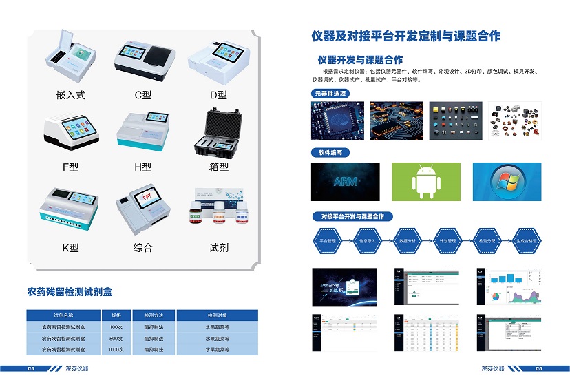 可以利用深芬儀器CSY系列農(nóng)藥殘留測定儀,可廣泛應(yīng)用于各級蔬菜檢測中心、農(nóng)貿(mào)市場、超市、環(huán)保機構(gòu)、蔬菜種植基地、飯店、車載及實驗室等食品安全檢測與監(jiān)控場所等單位對果蔬中農(nóng)藥殘留的檢測。